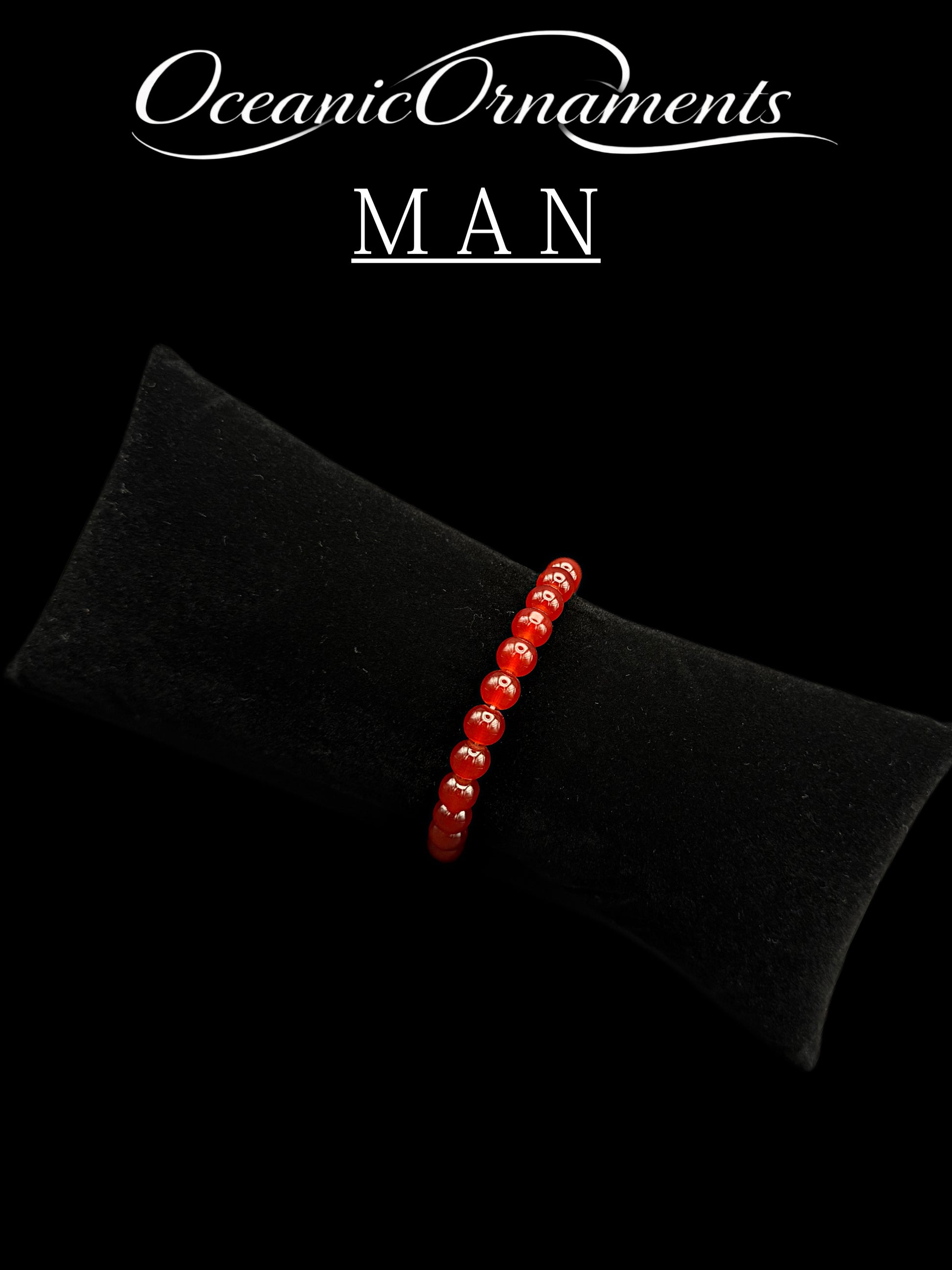 Das Herrenarmband „Karneol – Flame“ besteht aus leuchtenden Karneol-Perlen, deren intensives Rot an Feuer, Stärke und Lebenskraft erinnert.