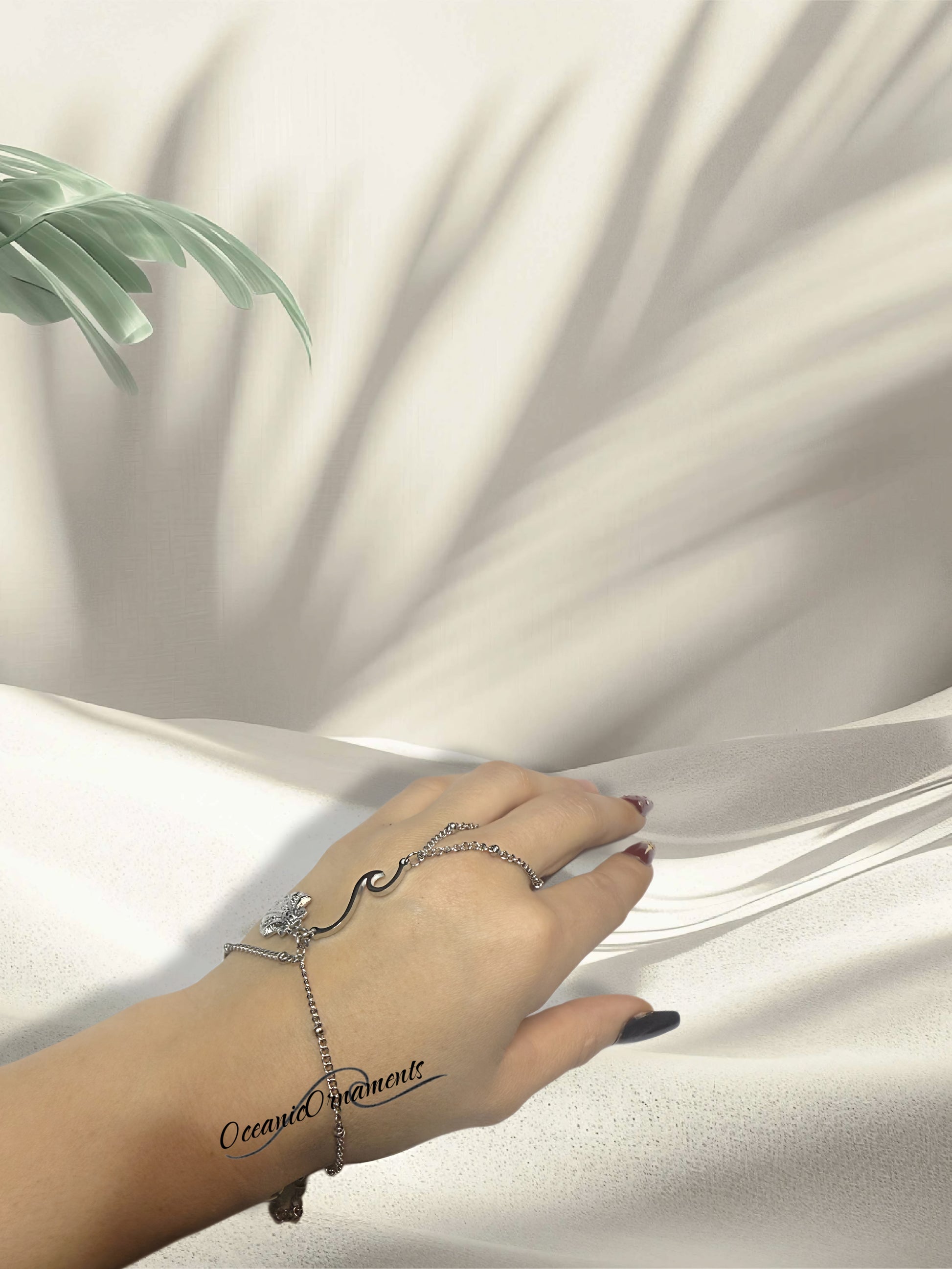Zart, ruhig und voller Bewegung: Dieser silberfarbene Handschmuck aus Edelstahl schmiegt sich harmonisch an dein Handgelenk. Der sanft gebogene Steg passt sich der Handform an, während das verstellbare Kettchen (16 cm + 5 cm Verlängerung) für angenehmen Tragekomfort sorgt. Ein feines Schmuckstück, das die Leichtigkeit des Ozeans widerspiegelt.