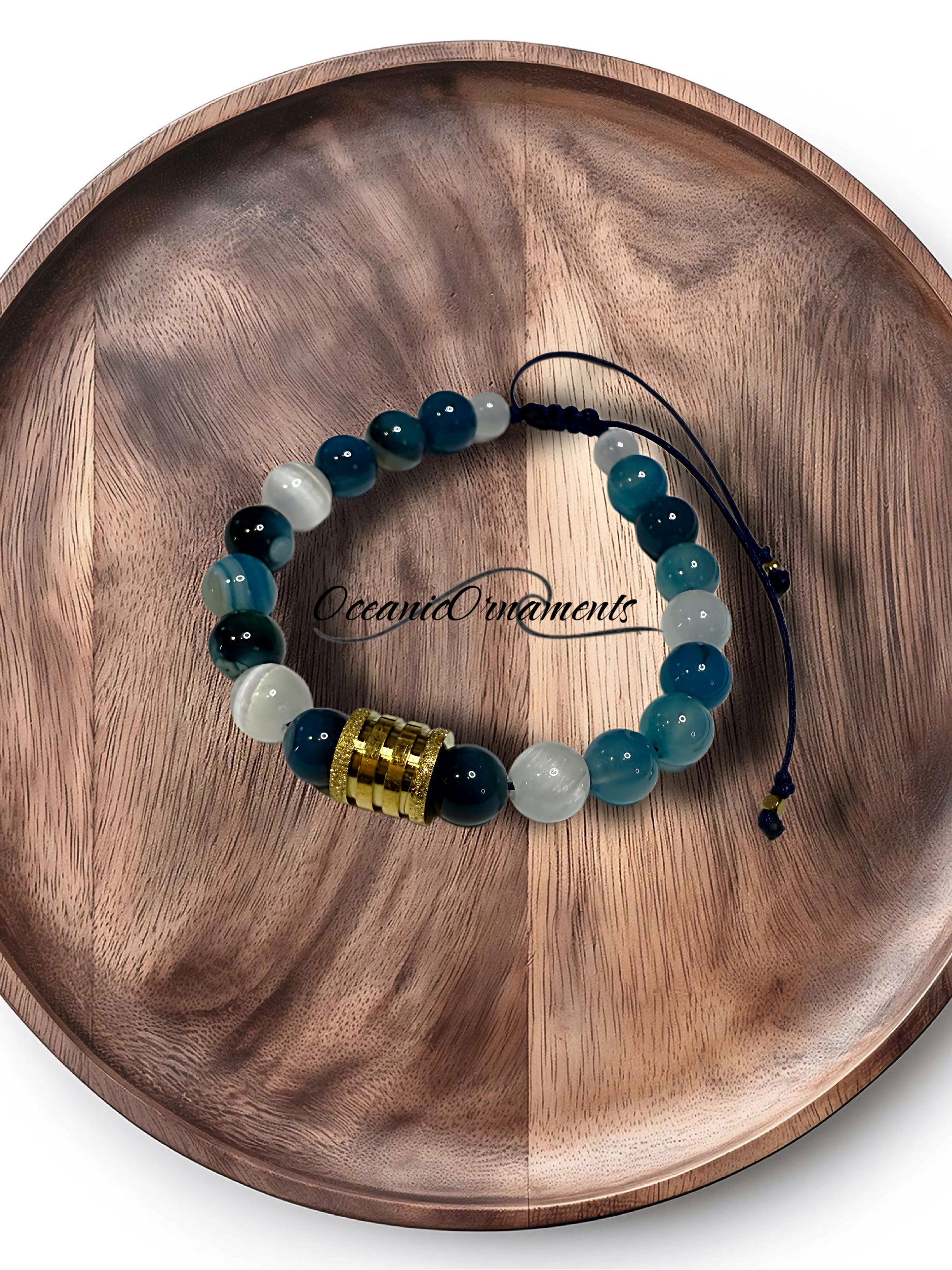 Ozeantiefe – Herren Heilsteinarmband mit Selenit & Bandachat
